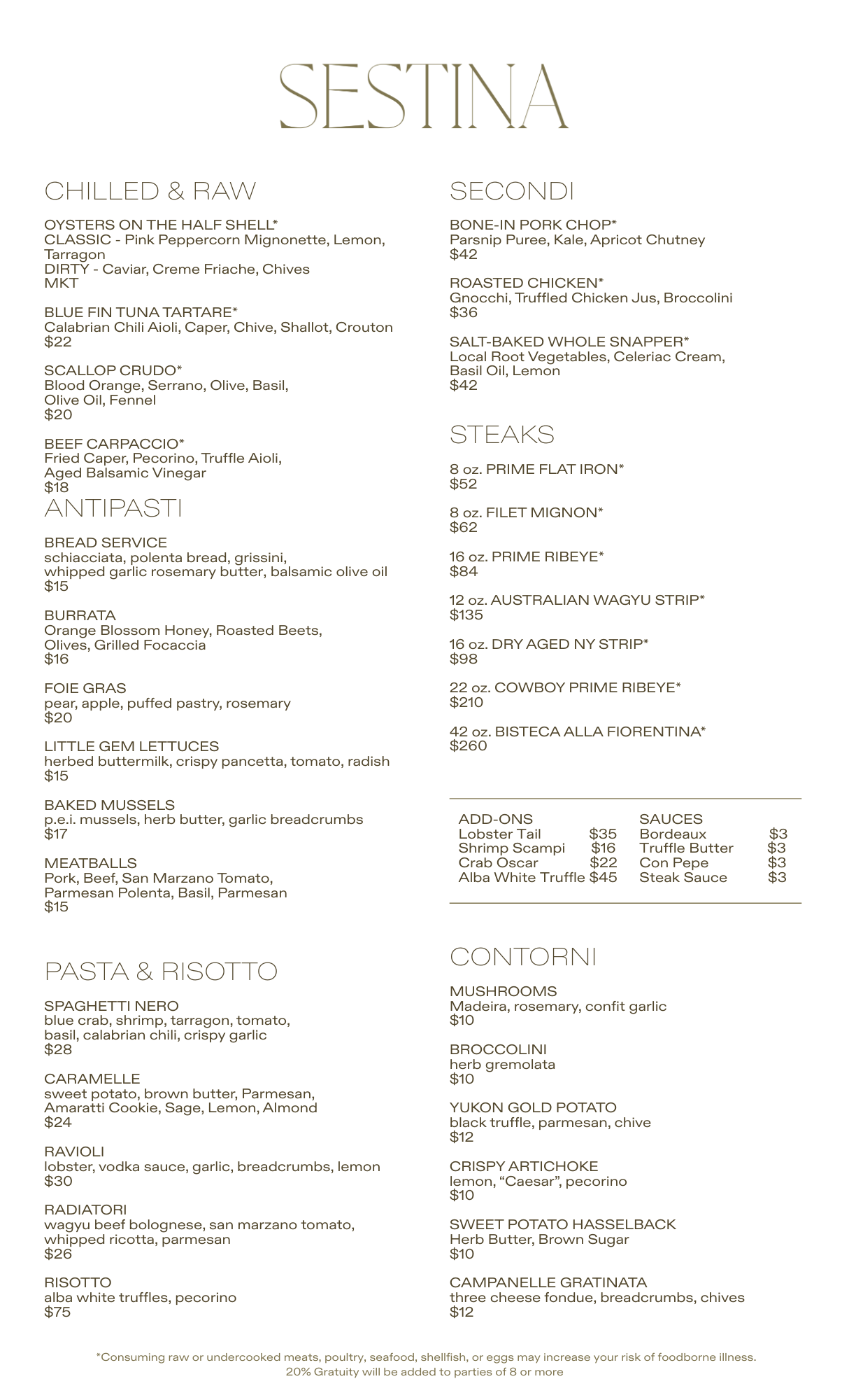 The menu highlights handmade pastas, classic steaks, and shareable plates that draw inspiration from comforting Italian cuisine while embracing locally sourced Arkansas ingredients. The menu will feature signature, hand-crafted dishes like Radiatori with Certified Angus Beef® Bolognese, Lobster Ravioli with Vodka Sauce and Lemon, and the signature Bistecca alla Fiorentina, a 42-ounce dry-aged cut cooked over an open flame. The wine list—rich in Italian varietals—is designed to complement the rustic flavor and warmth of Sestina’s menu.